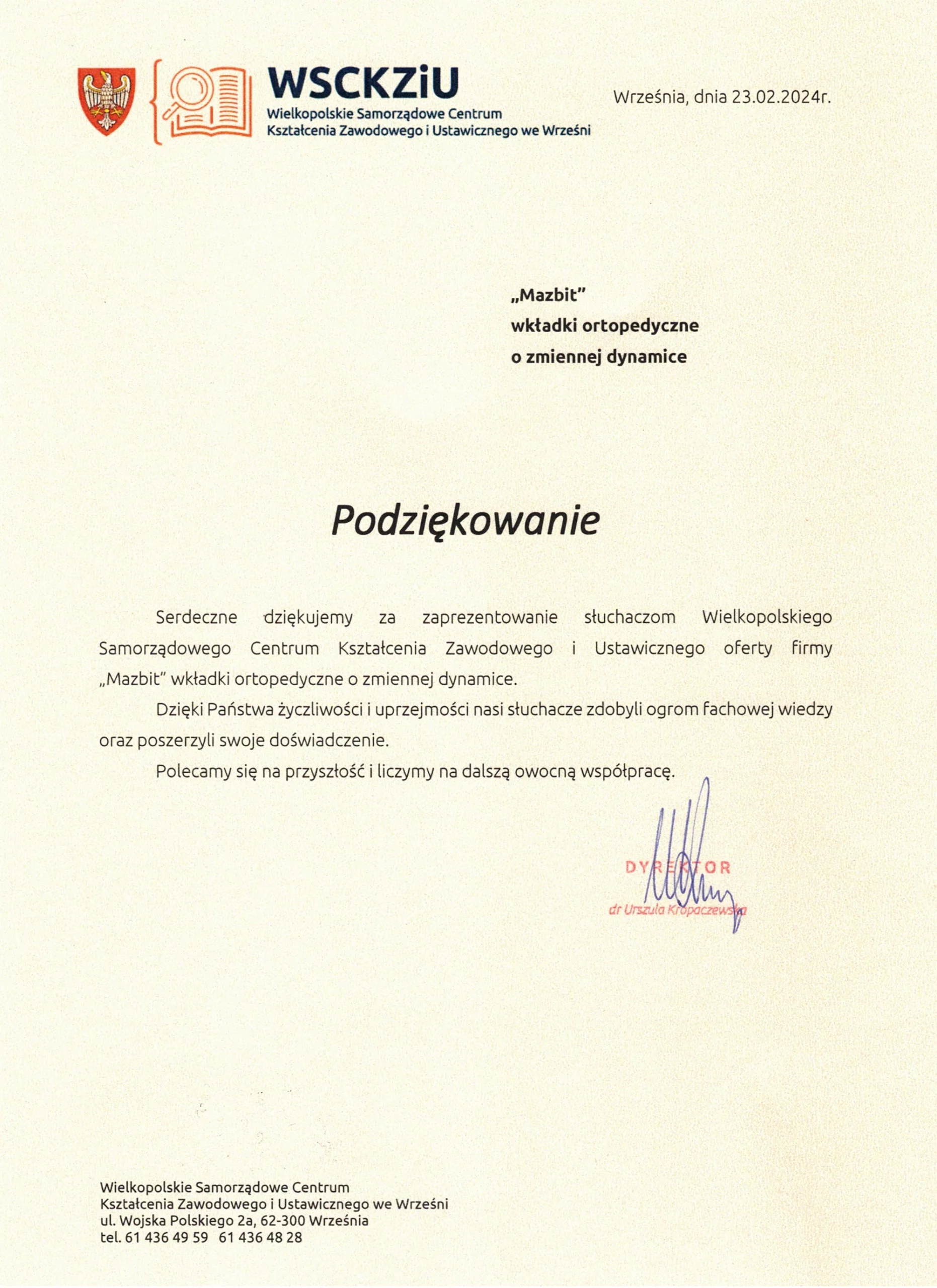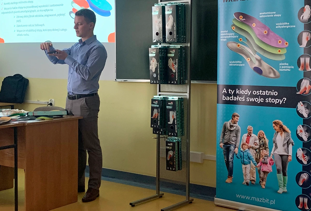 Firma Mazbit od wielu lat wspiera rozwój nauki i kształcenia w zakresie ortopedii, fizjoterapii oraz podologii. W ramach współpracy z uczelniami wyższymi prowadzimy wykłady i zajęcia praktyczne dotyczące nowoczesnych metod zaopatrzenia ortopedycznego, diagnostyki wad postawy i stóp, a także doboru wkładek ortopedycznych.