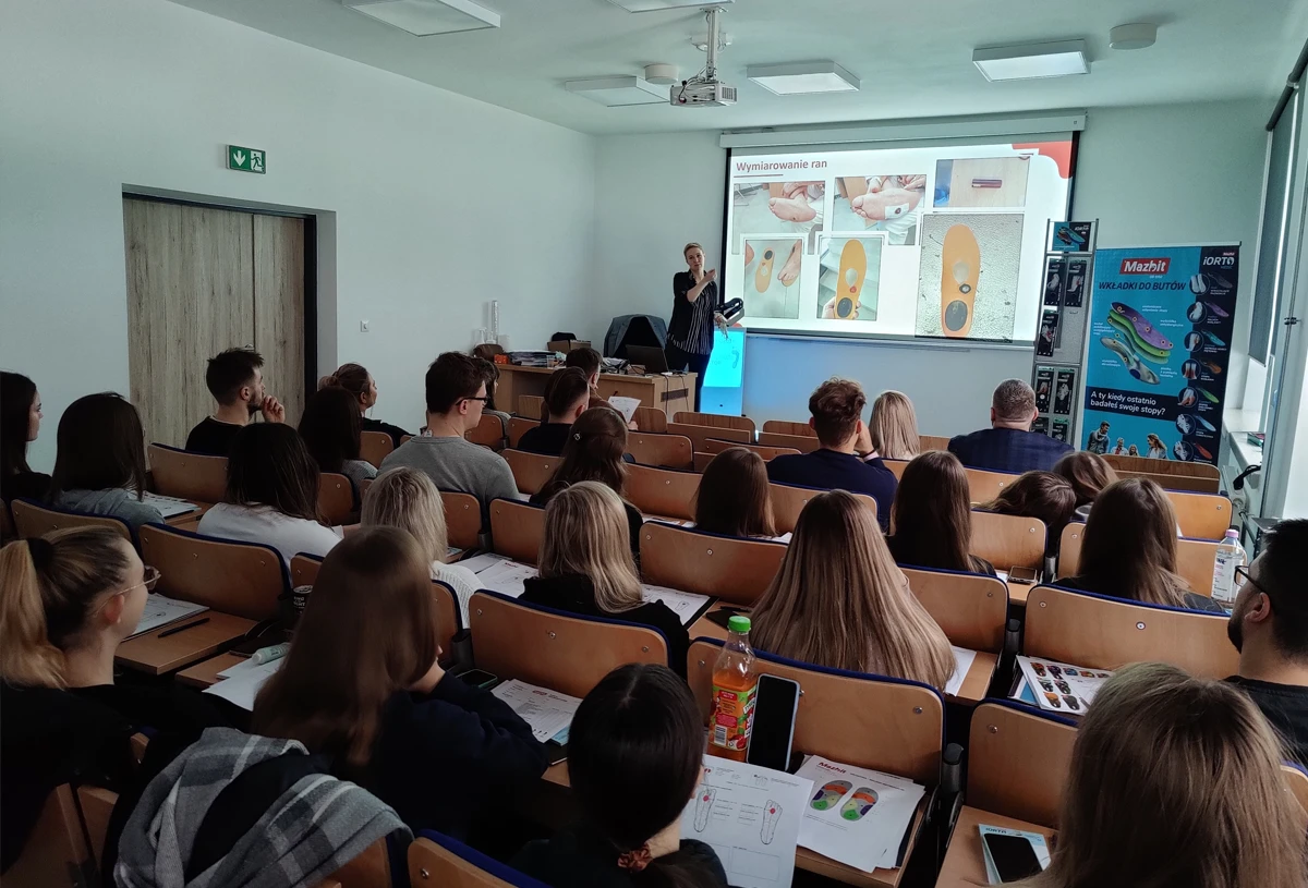 Podczas spotkań dzielimy się wiedzą i doświadczeniem zdobytym w codziennej pracy z pacjentami oraz specjalistami z branży medycznej. Studenci mają możliwość zapoznania się z różnymi typami wkładek ortopedycznych, poznania zasad ich doboru oraz zrozumienia różnic konstrukcyjnych i funkcjonalnych pomiędzy modelami dostępnymi na rynku.
